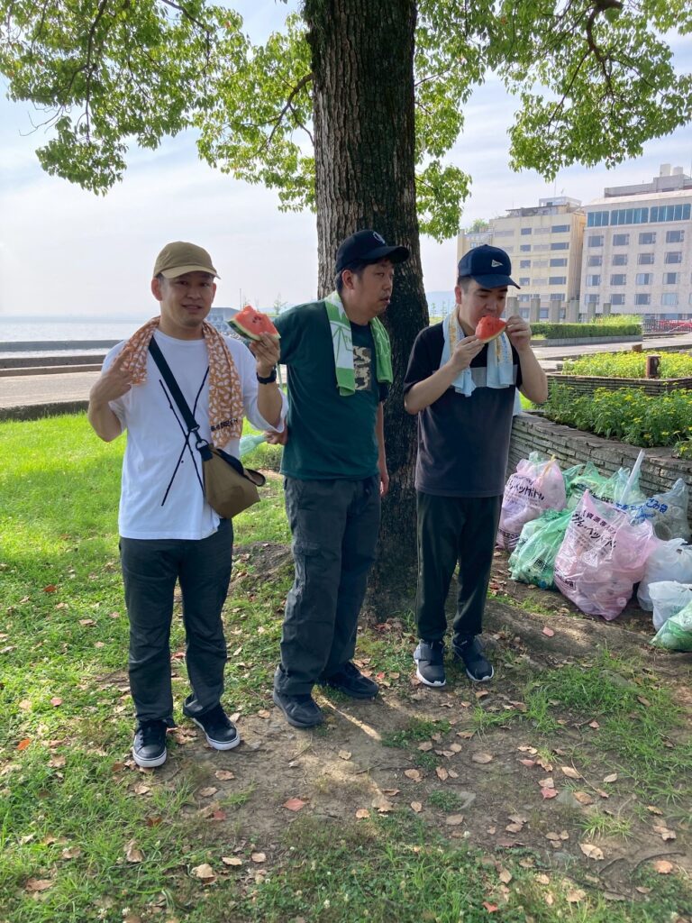 清掃後はスイカ割りをして、みんなで食べました🍉